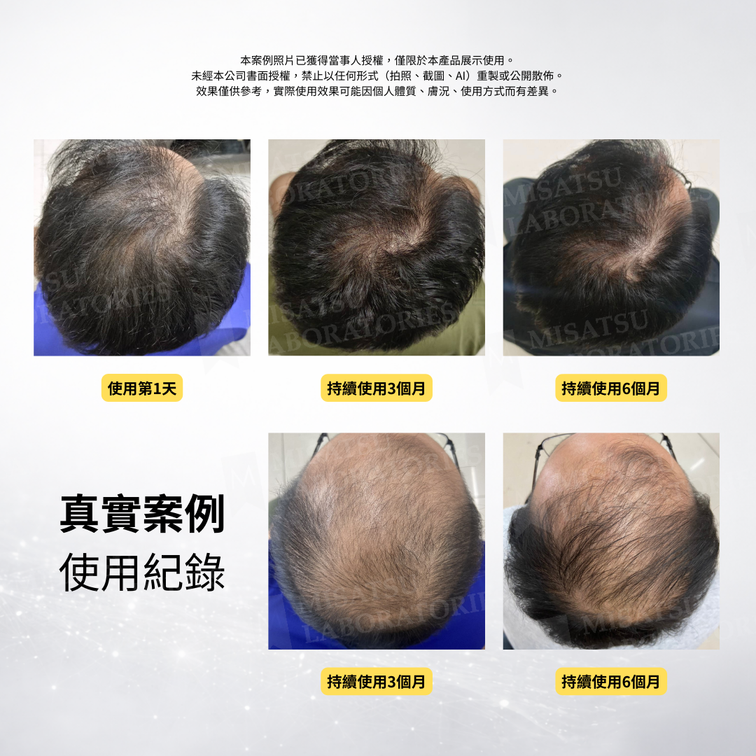 洗髮吹乾後將精華噴頭貼近頭皮,在前額、髮縫、後腦勺等重點區域噴灑 4-6 下。