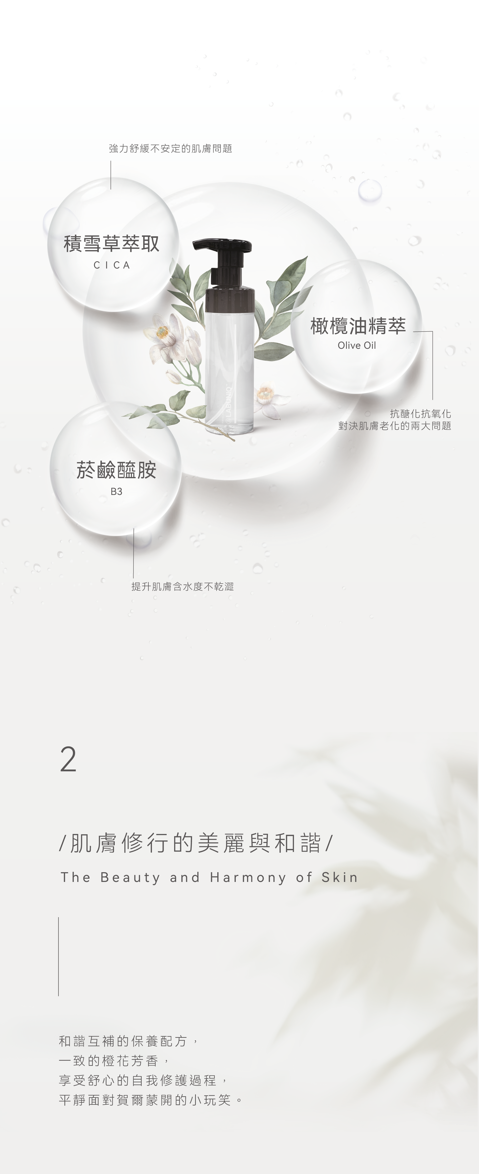 使用溫和的恬靜洗卸慕斯,輕輕清潔臉部,從一天的疲勞中恢復肌膚的清新。